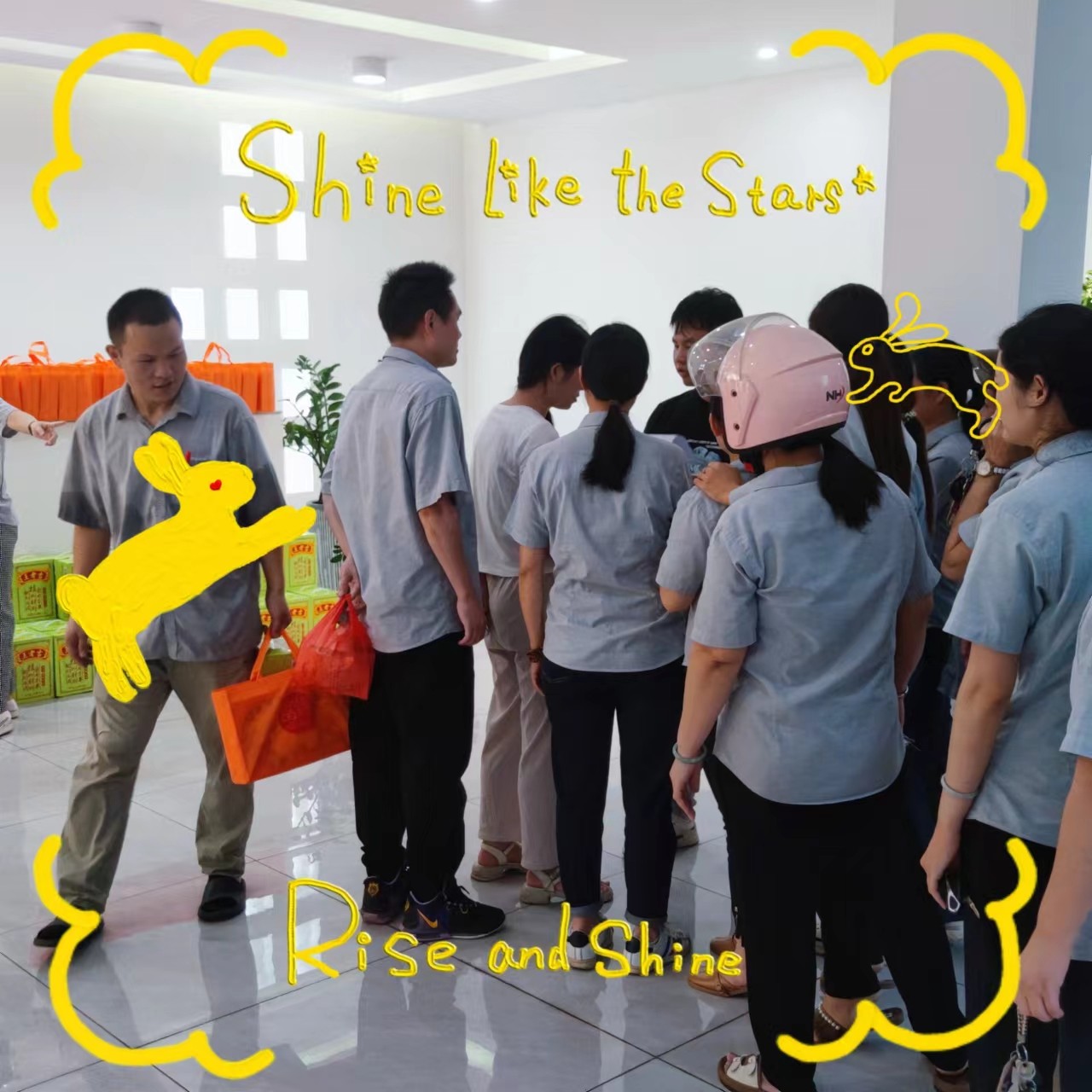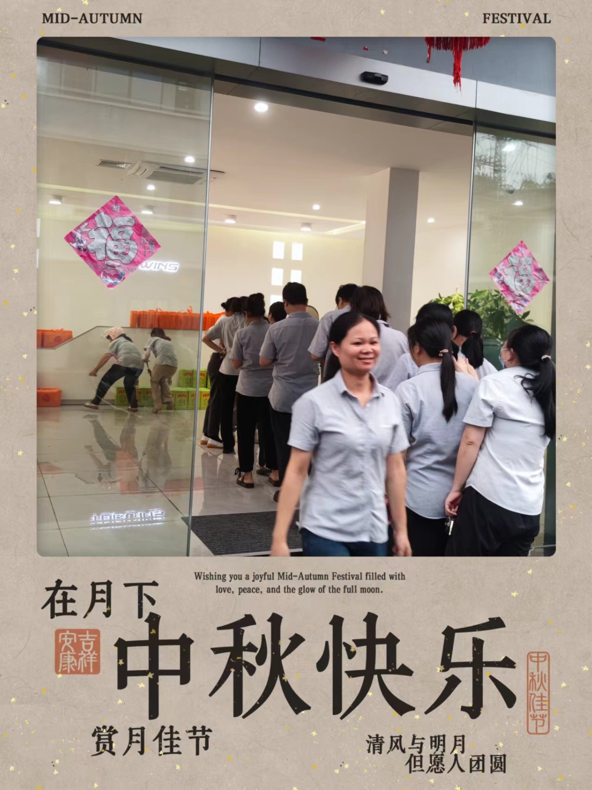 又是一年中秋至,祝福声声情谊长。亲爱的工友们,祝大家中秋节快乐!工厂感谢你们的付出与努力,愿你们在团圆的日子里笑口常开,愿你们的生活如中秋的明月一样美好!阖家幸福,万事如意!福气满满!